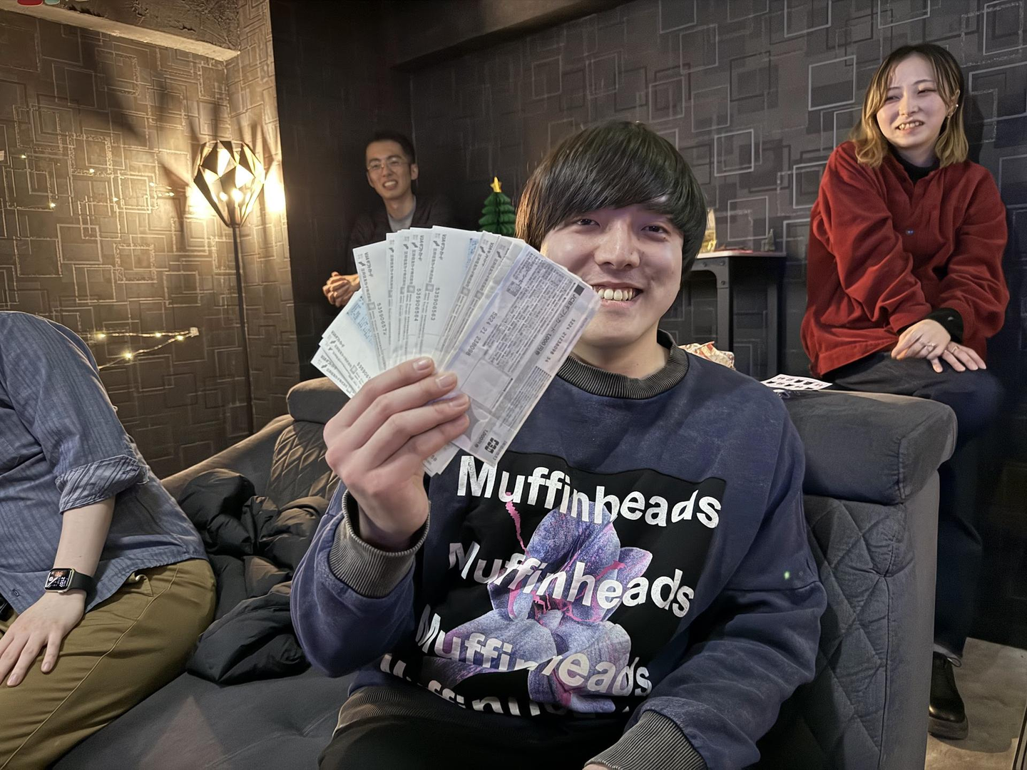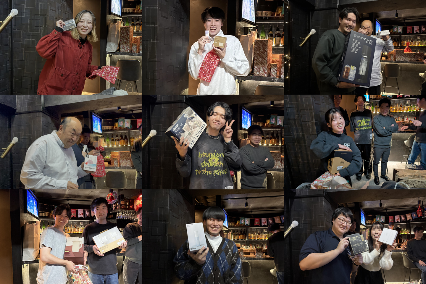 実は1次会の会場でも、社長から商品券がもらえるビンゴ大会を実施していたのですが、なんと1等が社長本人に当たるという展開に…!(初快挙✨)