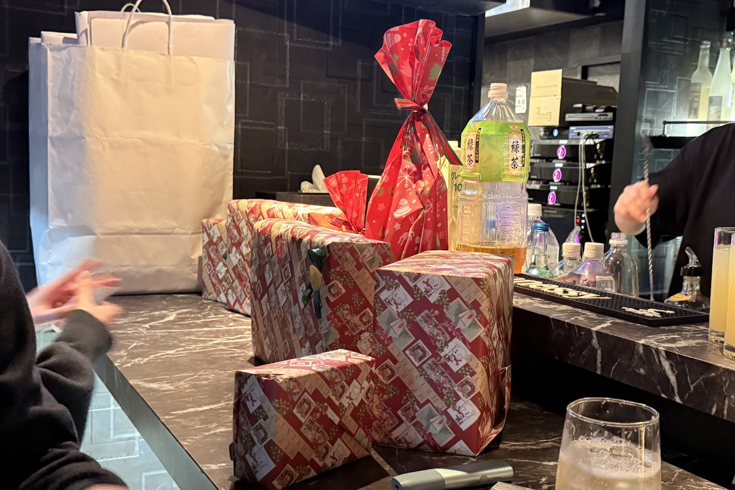 クリスマス仕様にラッピングされた景品がずらりと並び、会場のテンションは一気に最高潮に🥺✨(実はこの他にもたくさん景品があったのですが、盛り上がりすぎて写真を撮りきれませんでした…😣)