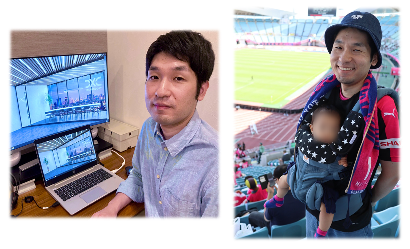 在宅ワーク中のキリッとしたUさんと、娘さんとのサッカー観戦にニッコリなUさん。素敵です!
