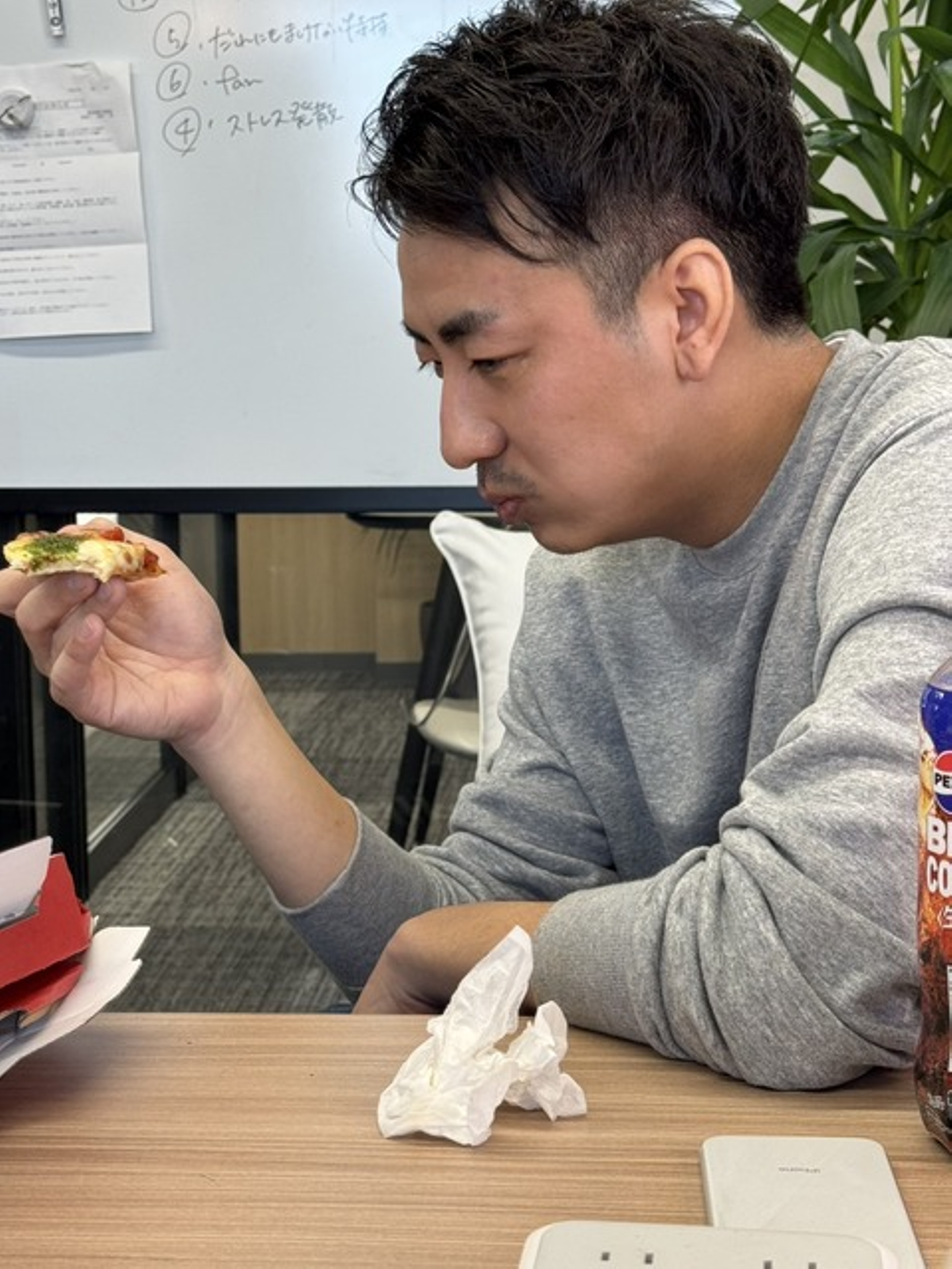 「食ってみな飛ぶぞ!」ってことでピザをみんなで食べました。
