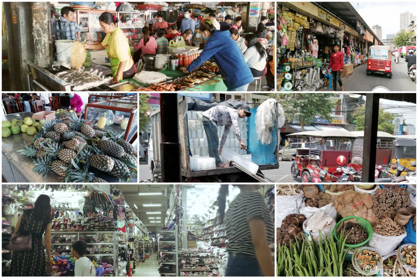 いつ訪れても活気あるローカルマーケットは、買うものを決めてからでないと、ついアレコレと買ってしまいます。野菜や果物は新鮮で街のスーパーより安価、所狭しと並べられた雑貨や靴、生鮮食品を冷やす氷屋、カンボジアならではの薬草を売る専門店などなど、他にも多様なお店があり、行く度に新たな発見があります。イオンも2014年に出店しており、只今3号店のオープンを急ピッチに進めています。日本食材もいろいろと揃いますよ。