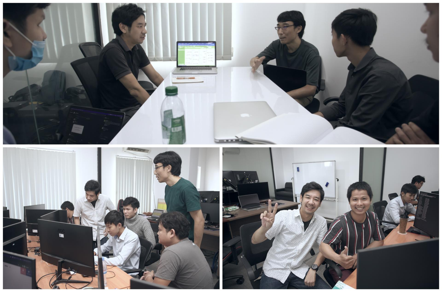 一からカンボジアでやってみようと探していた時に、人材紹介の会社でDynamoを紹介していただきました。募集している業務がお客さんとエンジニアをつなげる役割で、前の業務と似ているなと感じました。僕はITの専門とかエンジニアではないのですが、ブリッジの仕事のステップは何となくわかっていたので、採用していただいて就職しました。働き初めてまだ2週間ほどですが、いいところに就職できたと思っています。ここのスタッフは人が優しいですし、カンボジア人の仕事に対する真面目さや、きっちり仕事をしているところに感銘を受けています。エンジニア達のスキルも高いし、ポテンシャルを存分に感じますね。こういう人達が将来カンボジアの未来を作っていくんだなと。若い子達がこんなに知識スキルを持っているのに正直驚いています。僕はまだ一員として業務の中に入れていませんが、今は日々勉強させていただいている段階です。業務を進めていく中で、ボヤっとしていたものが少しずつハッキリとわかってきて、これについてはこんなことをやっていて、こういう風な結果になっていくんだな、というのが大体わかってきた段階です。あとは具体的に細かいところを覚えていけば今後つながってくるはずです。プロジェクトの情報をあまり詳しくはお話できませんが、これから開発チームで新しいプロジェクトを立ち上げていきます。弊社では、医療業界向けのWebサービスを運用されているお客様から、そのシステム運用の一部を請け負っていたのですが、その開発・運用のすべてをこの度弊社にスイッチすることになりました。現在、担当することになった新しいシステムについてみんなで解析し、開発する環境を作っている最中です。プログラミングは世界共通言語ですので、日本のプロジェクトでも言語を問わずにカンボジア人と担当していけるのはとても面白いですね。また、最近では次々に新しいソフトが出てくるので、それに対応するためにはエンジニアは一生勉強し続けなければなりません。間近で見ていて、そういった大変さは感じるところはありますね。僕の担当は、こういうことがしたい、こういう動作をする機能が欲しい、こういうWEBサイトを作りたいというお客さんのニーズをヒヤリングしたものをエンジニアに伝え、彼らがプログラムを書いて作成したものをチェックして、OKだったらお客さんにフィードバックするというディレクター的な役割です。そして段取りや納期などのスケジュール管理も重要です。