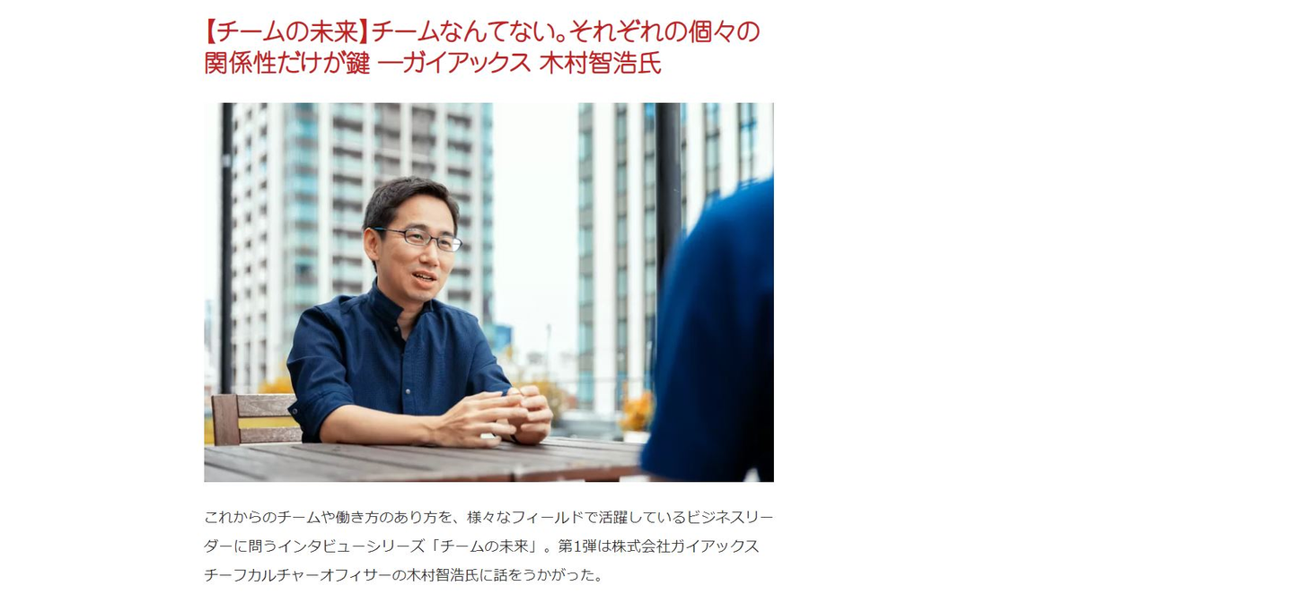 記事のタイトルは『【チームの未来】チームなんてない。それぞれの個々の関係性だけが鍵 ―ガイアックス 木村智浩氏』です。