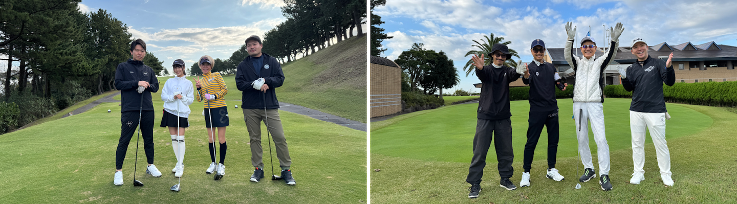 当日は、「おたからや」のイメージキャラクターである丸りおなさんに加え、いーふらんが展開する E-swing プレミアムのインストラクター・比嘉瑞姫も参加しました。天候にも恵まれ、まさにゴルフに最適な一日となり、参加者はそれぞれの腕前を発揮しながら白熱したプレーを繰り広げました。