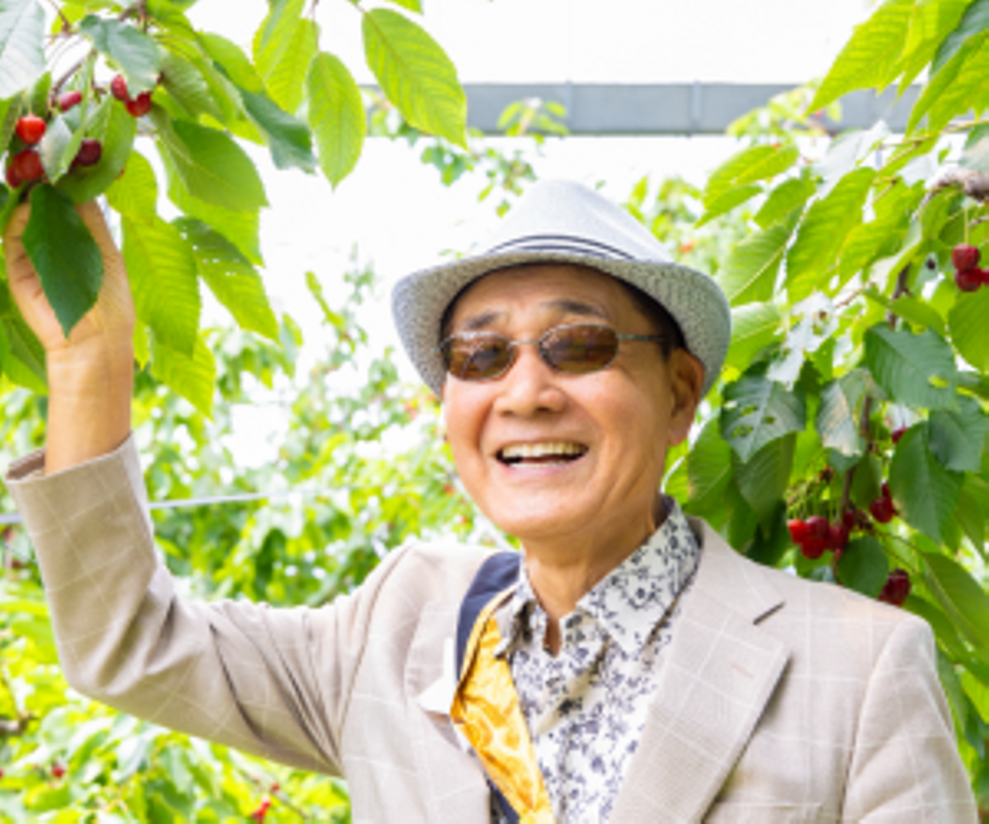 代表取締役会長 渡辺喜久男といーふらん社員のさくらんぼ狩り体験