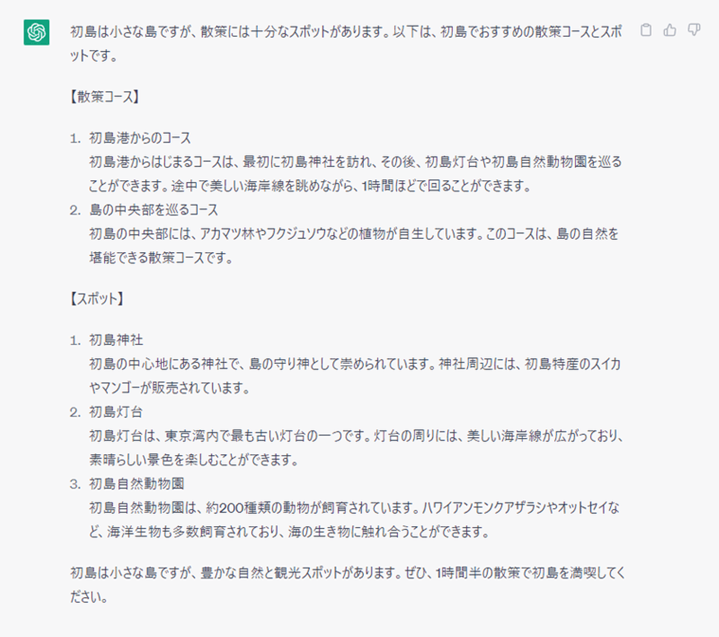 以上、ChatGPT先生と行く初島の旅でした(そんな企画だったっけ?)