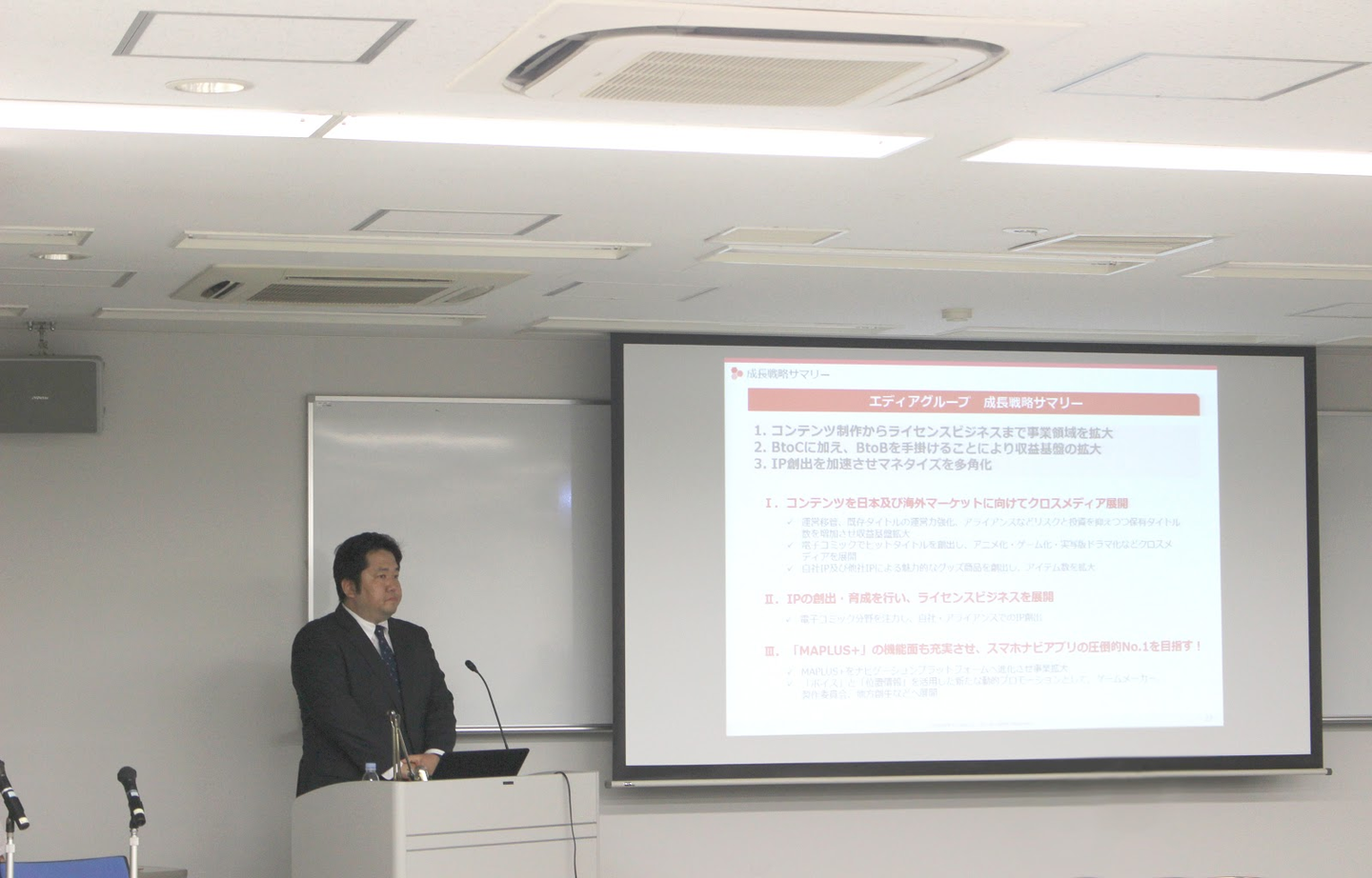 「交代した理由としては、前社長は会長という立ち位置になりエディアだけでなくグループ全体を見ることに専念できるようにし、迅速な対応がとれるようにするため。エディアは前副社長である私が社長を引き継ぎ、これはゲーム以外のコンテンツも成長させるためでもある。アライアンスでのIP創出については、エディアだけではまだまだコンテンツ力は大きくないので、提供を多く受けることで総合エンターテイメント企業として事業を展開していく。」と話していました。