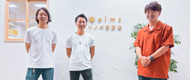 エイムズは、リノベーションから運用(収益化)まで、築古遊休不動産の再生を ワンストップでサポート。3つの事業を中心に行っています。 ●eims craft 設計から施工まで一貫して行っているオリジナルリノベーション ●リノベ百貨店 リノベーション・デザイナーズ物件に特化したお部屋探しサイトの運営 ●SRM eims craftで手掛けた物件を宿泊施設として運用し、快適な滞在を提供