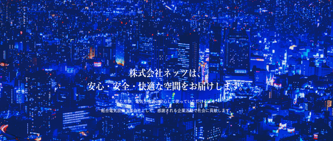 初めまして。 株式会社ネッツです。 弊社は総合電気工事会社です。 「施工管理」「施工」「保守・メンテナンス」を軸に関西で電気工事を行っております。 弊社工事の特徴として、「公共性の高い物件」での工事があります。 地図に残る物件・誰かの想い出の一部になる物件を手掛けながら、関西を明るく照らしませんか?