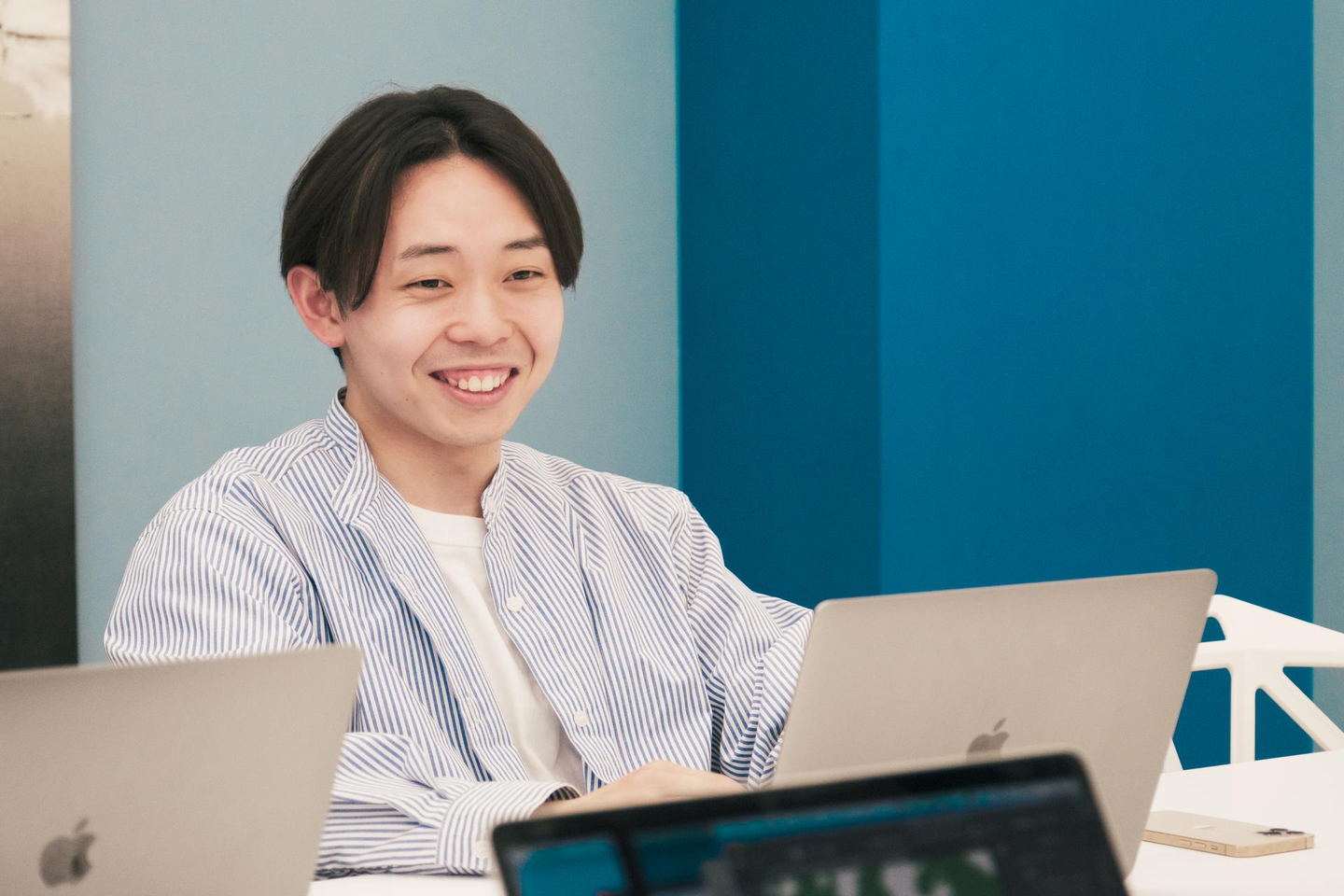 石川「会社説明会や選考を通じて、エレファントストーンで働いている社員さんと一緒に仕事をしたいと感じました。就活時は、“何をやりたいか”よりも“誰とやりたいか”という視点を軸にしていました。選考を受けていく中で、面接官の方がすごく自分に寄り添ってくれて、エレファントストーンの社員の方々には業務のことも他愛のないことも気軽に話せると感じて入社を決めました!」