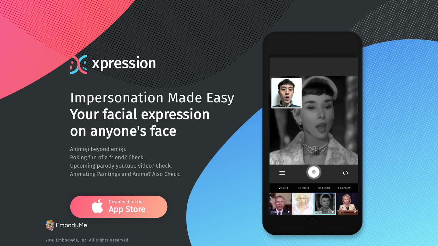 Xpressionは、ディープラーニングを用いて本物と区別がつかないフェイクビデオを簡単に作れるスマホアプリです。