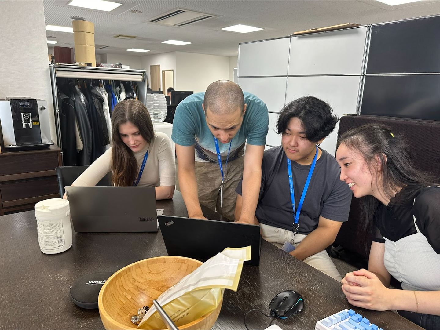 EMCHのカルチャーは自分に合っていると思っています。もともと日本に来る前は、日本の企業は固い雰囲気なんだろうなと想像していたので、うまくメンバーとコミュニケーションが取れるか不安はありました。でもオフィスに来てみたら全然そんなことはなくて、フランクな雰囲気で、皆さん話しやすかったです。あとは、技術に関する知識をエンジニアメンバーが惜しみなくシェアしてくれるところが良いですね。習いたいことがあれば「興味があるなら教えてあげるよ!」って感じで気軽に勉強会に参加させてもらったり。この間も、ソフトウェアエンジニアと一緒にGOでコードを書いたんですよね。大学で少しプログラミングを学んだことはあったけれど、実際にソフトウェア開発に挑戦するのは初めての経験でした。