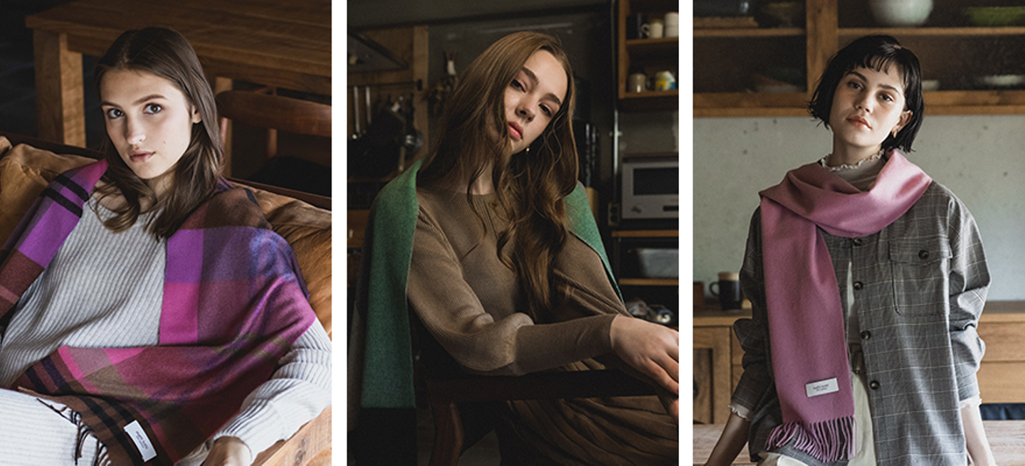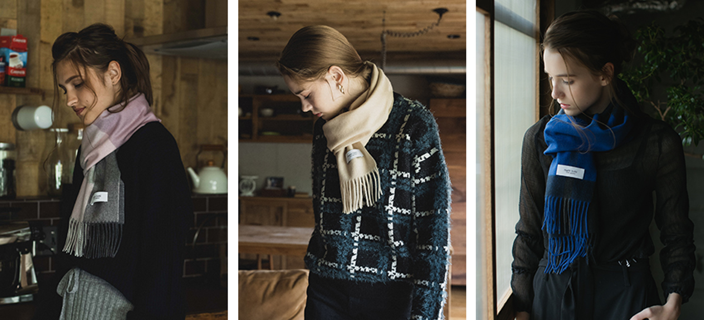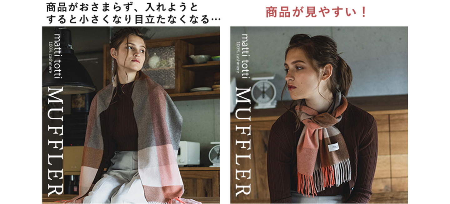 EML worksでは、プライベートブランド「matti totti(マッティトッティ)」にて、マフラー・ストールをメインとしたカシミヤアイテムを販売しております。商品ページに使用する写真は、全て自社でディレクションし撮影を行います。