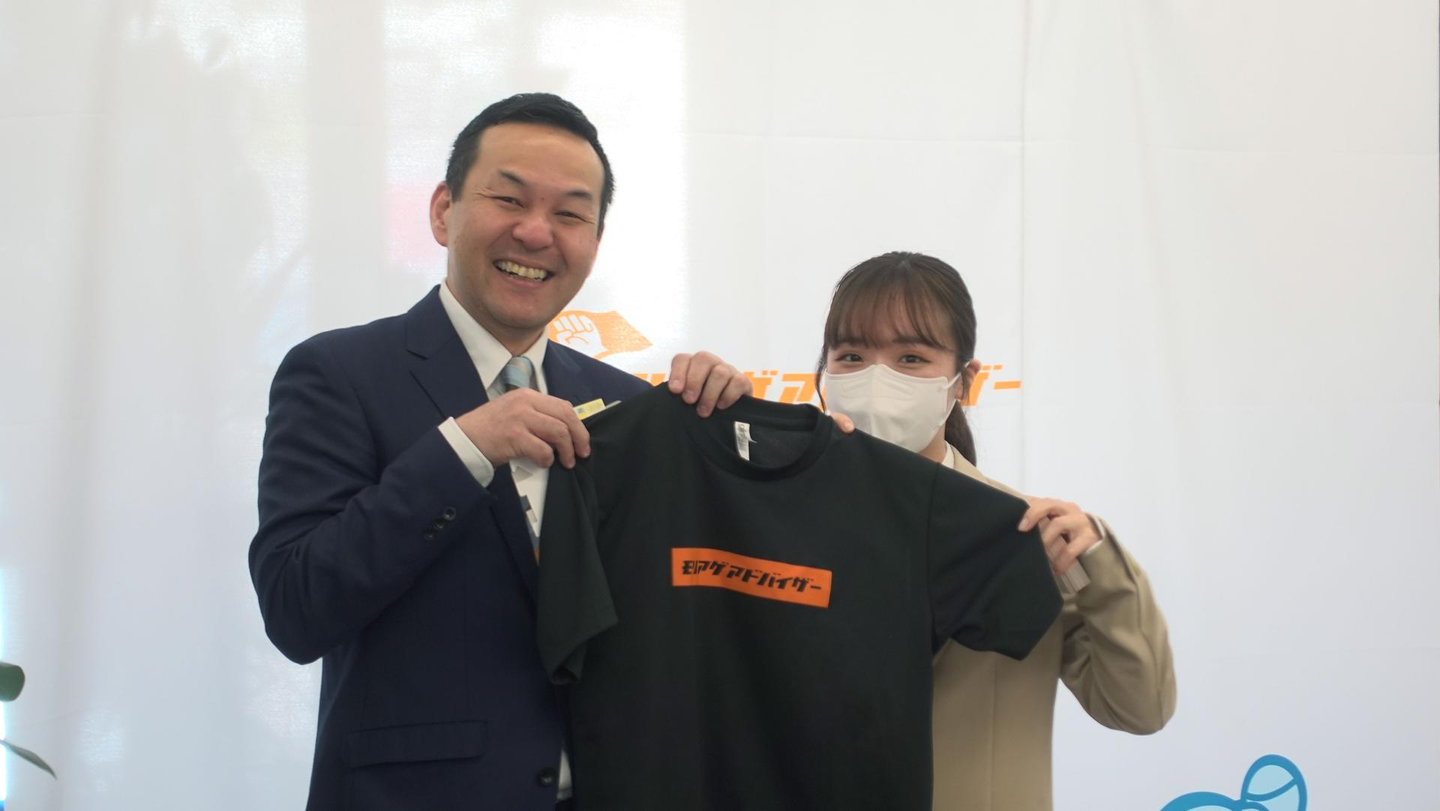 ▼モリアゲ隊の証として、モリアゲTシャツと名刺を贈呈!