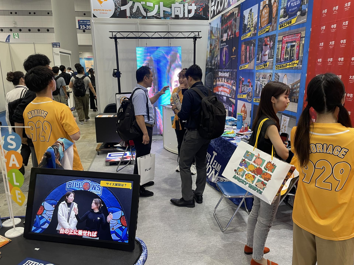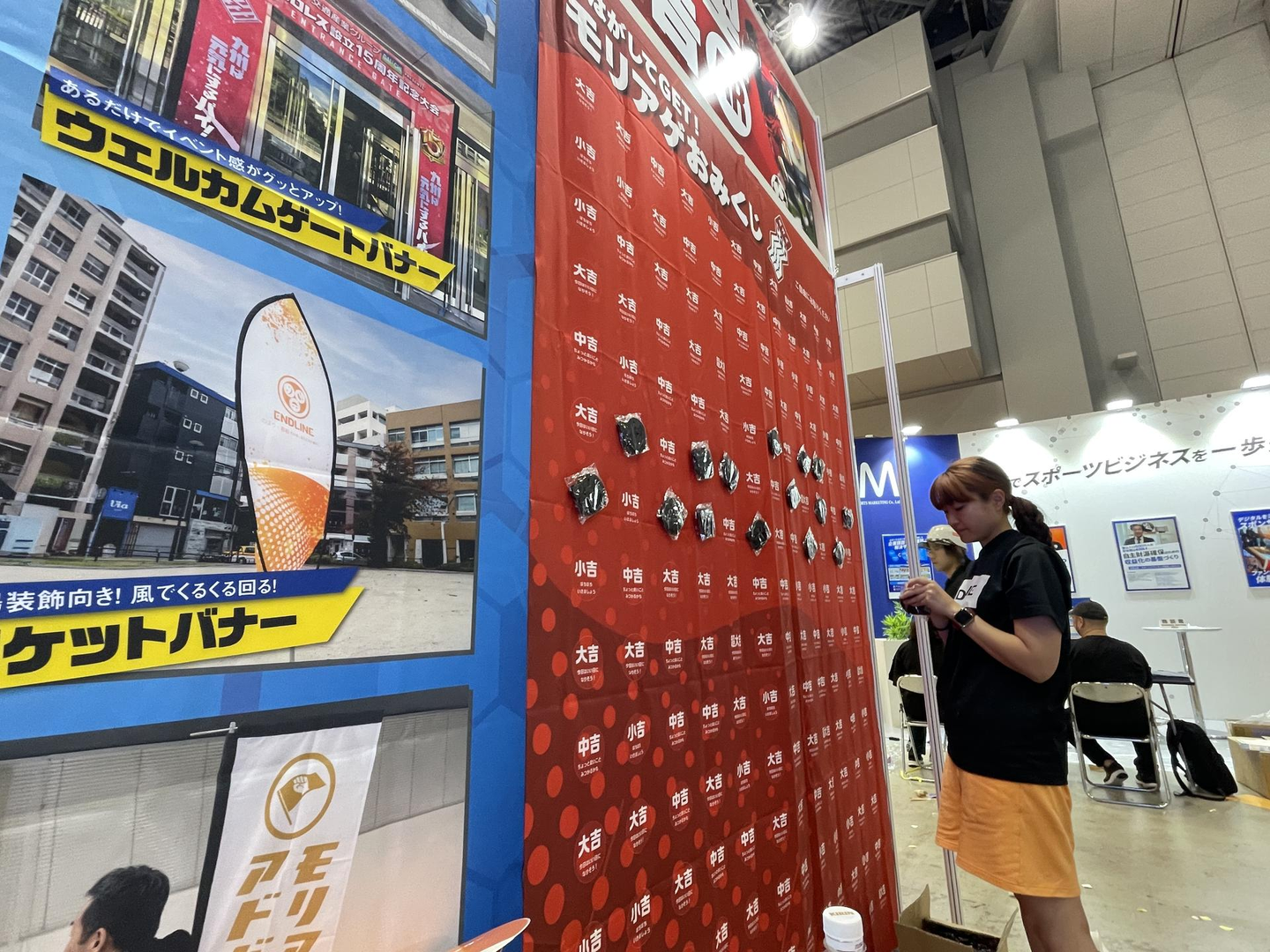 モリアゲアドバイザーのブースは、LEDビジョン、ピールオフ広告、イベント向け装飾、ノベルティグッズなど、バラエティ豊かな商品を展示しました。特に、プロスポーツチームの会場装飾に特化したサービスは、来場者の皆さんから大きな注目を集めました。どのような商品が展示されていたのか、詳しく見ていきましょう。