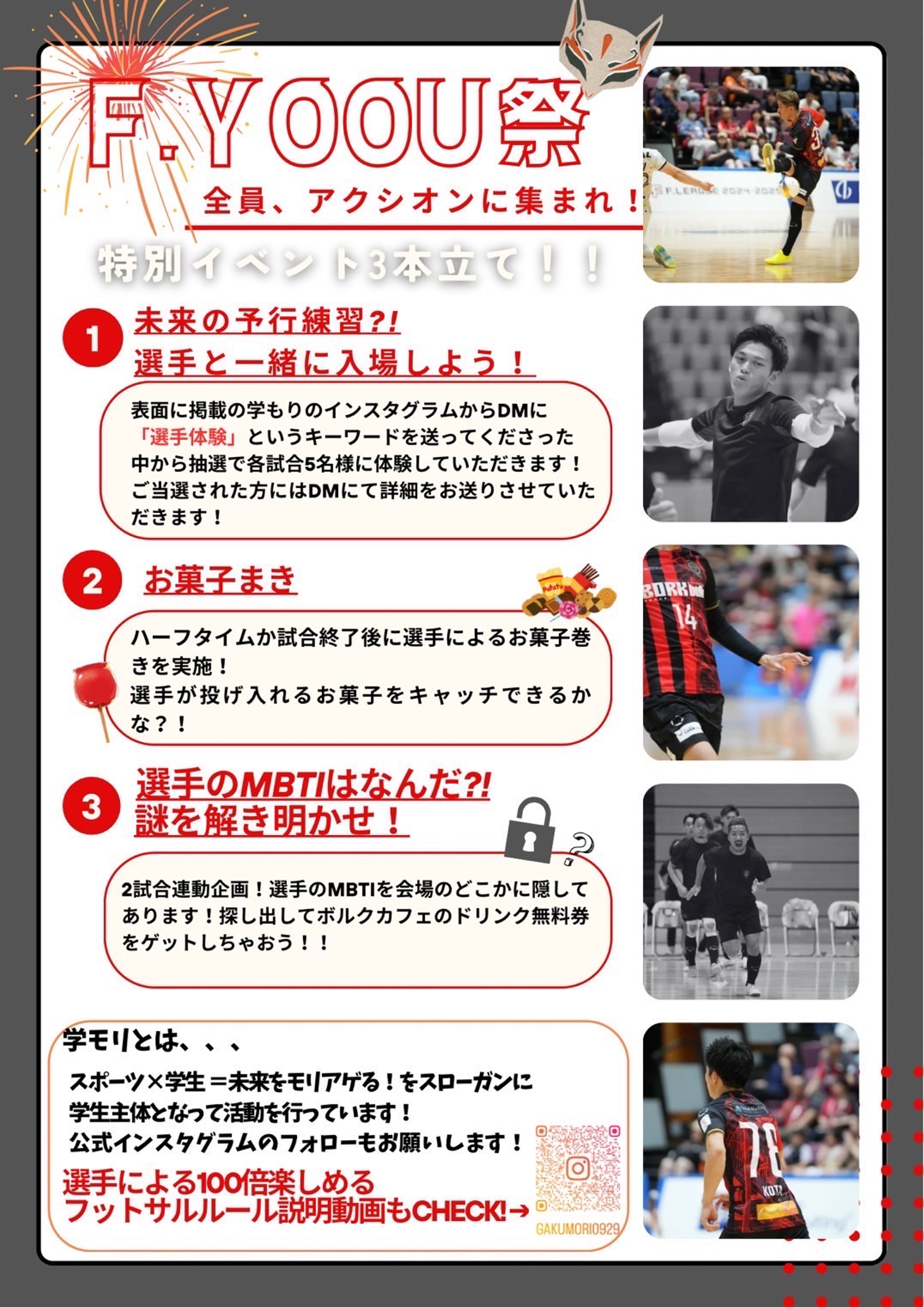 第1回目の企画では、北九州のプロフットサルチーム「ボルクバレット北九州」さんとのコラボを実施しました。企画の進行を任されたのは新卒1年目の松野君で、チームとのやり取りからアイデアの形づくり、実行まで全て大学生が主体となって進めました。