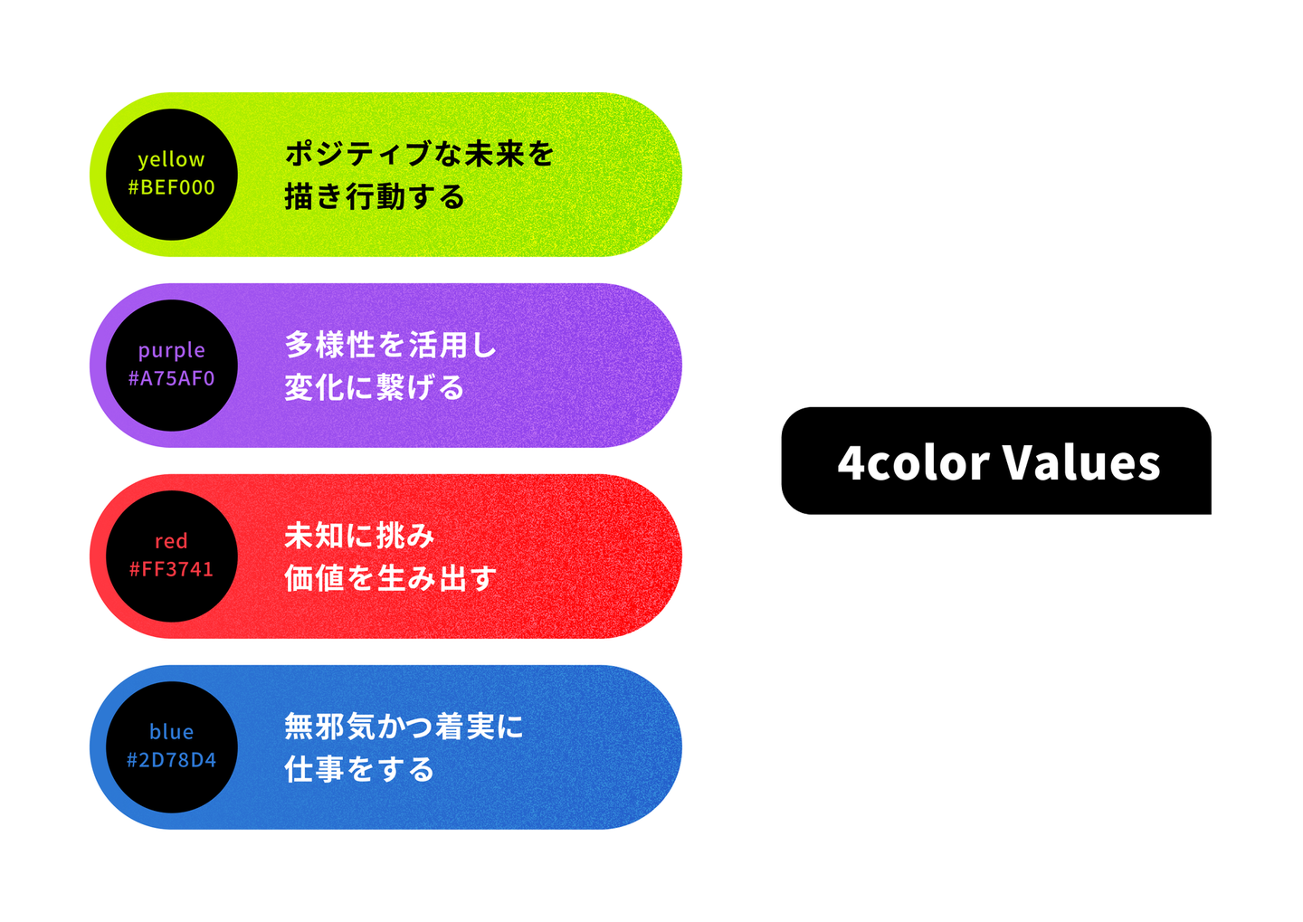 そう、この4color Valuesは「未来のためにできることをやる。」というパーパスを軸に、全てのバリューが連動しています。