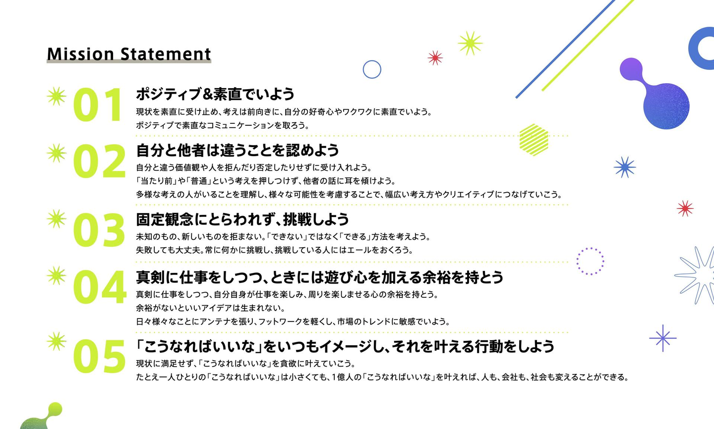 Mission Statement(行動指針)も定めています。