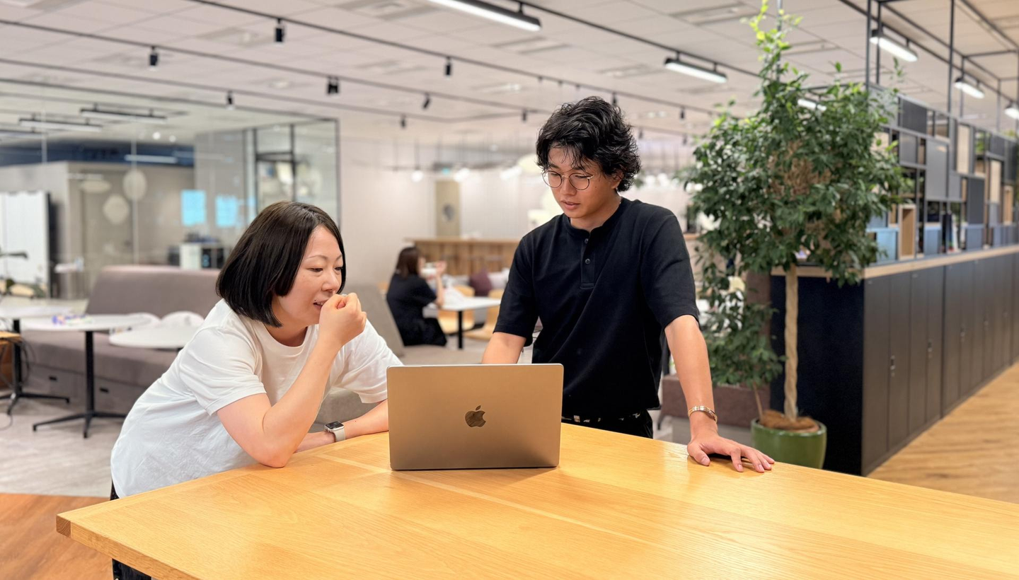 社内での打ち合わせ風景 :左 Ayanoさん、右Kosukeさん