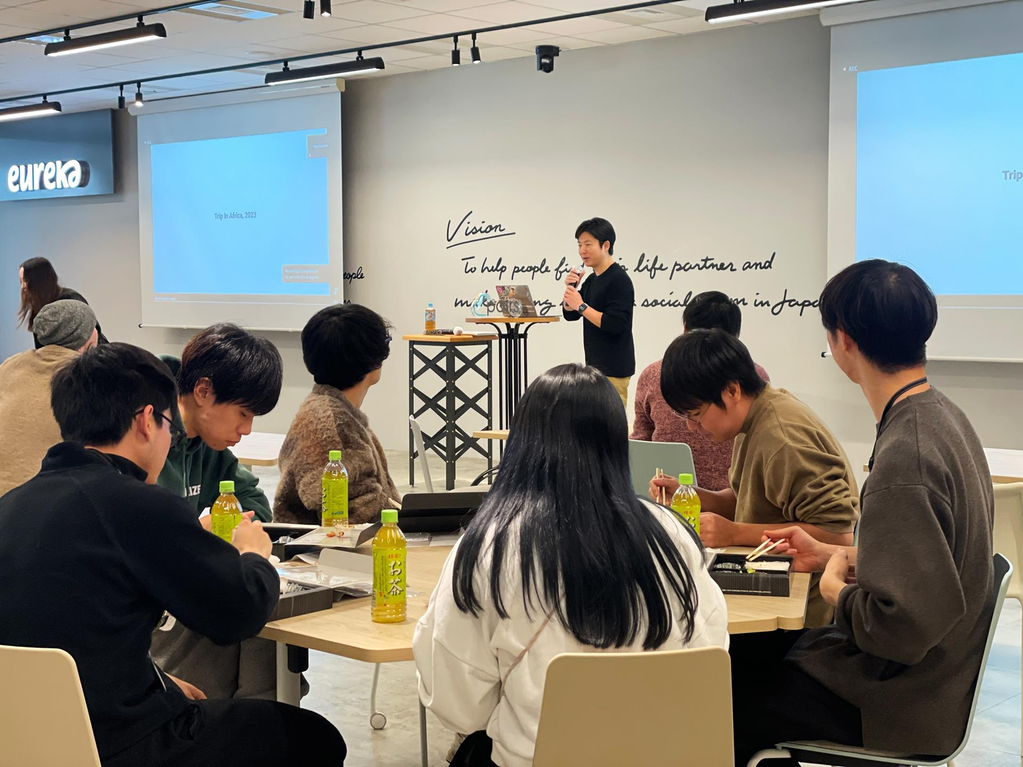 English talkの様子(CEOのRyomaさんがアフリカ旅行に行った際の話をしてくれました)