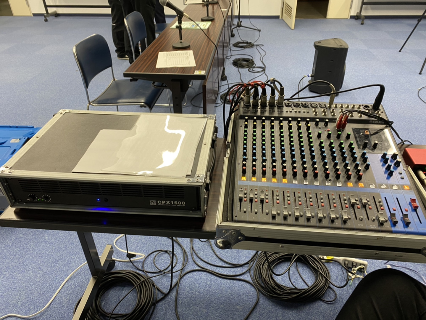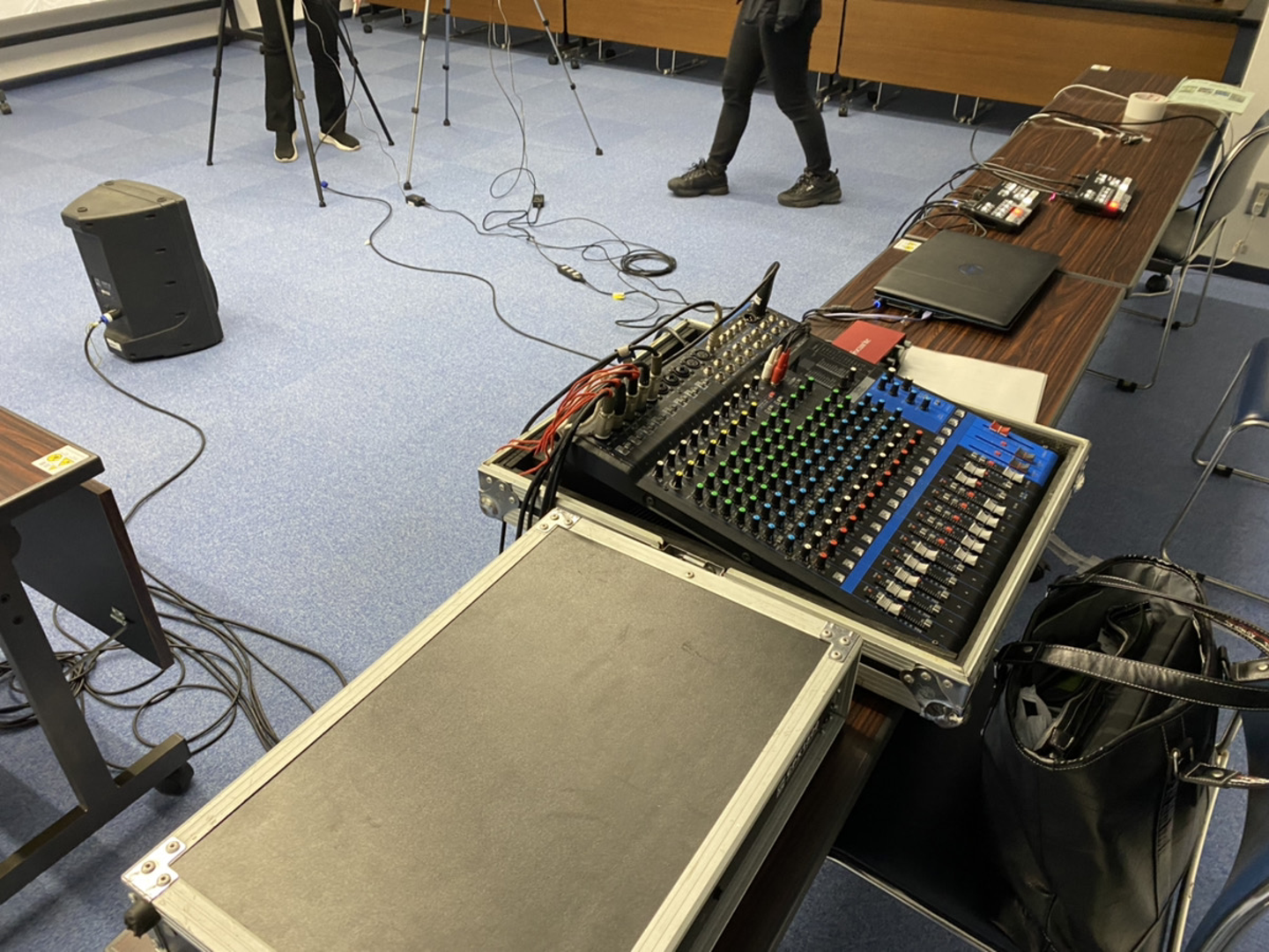 こんな形で機材とケーブルを繋いでスピーカーからと配信に音が乗るように接続をしたのですが、練習したからこそ当日は問題なくスムーズに接続できましたが、最初は「これはなんのやつでしたっけ?」というところからスタートしてます笑(もちろん前もっての練習のときですよ!)