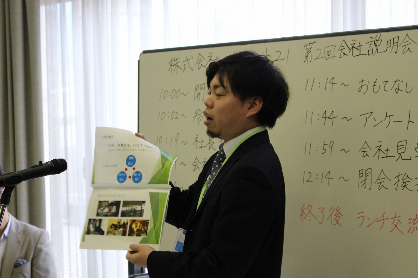 この日の司会は、2016新卒の大阪支店サブリーダーK君です。K君は熱い思いをいつも語ってくいれますが、よく滑ります・・・(^^)