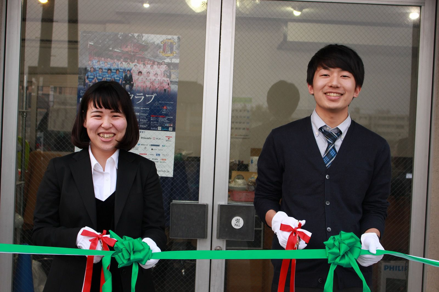 「テープカットはじめてです!」と、テンションがあがりつつ、
