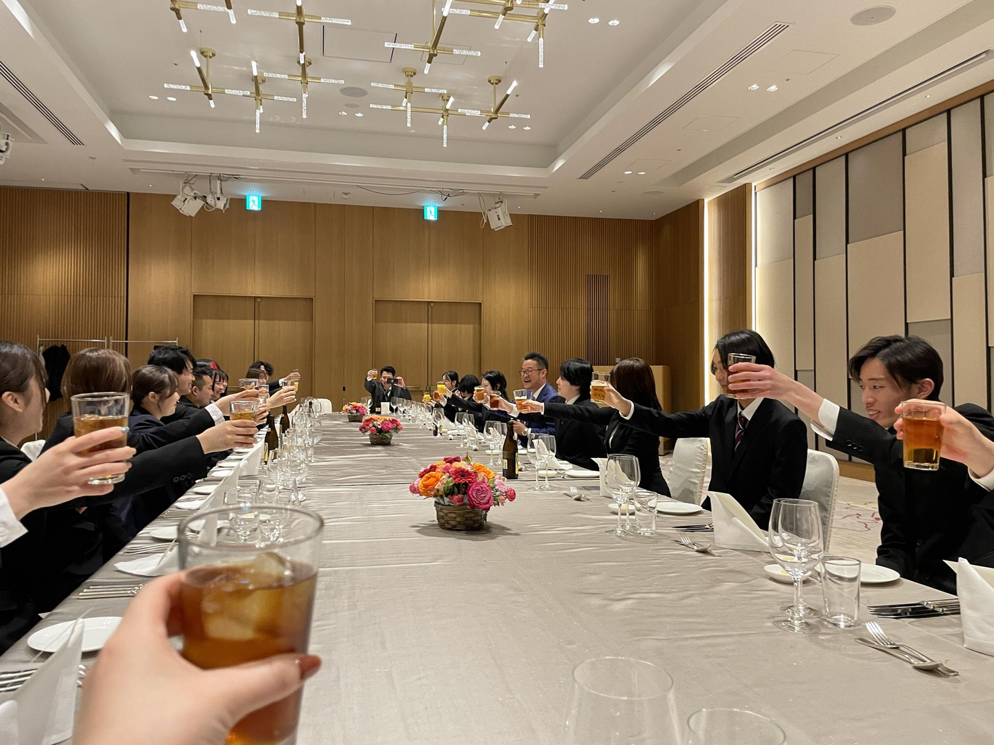 合同入社式が終わり、そのままイベント21の新卒20名と引率の先輩社員3名とJWマリオットホテルでフレンチコース料理をいただきました。
