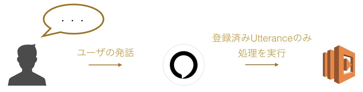 - (事前に受け付けるセンテンスとして登録されていた場合)Alexaが発話を受け付ける
