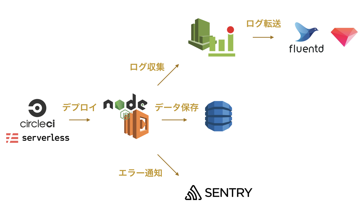 - ログ収集・分析 : CloudWatch -> fluentd -> TreasureData