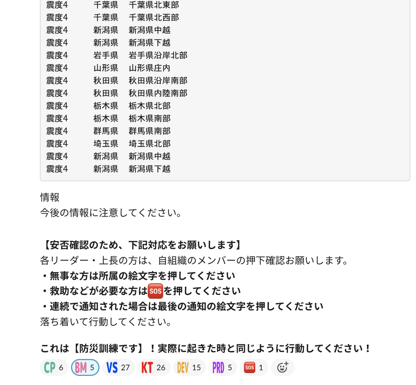 「なるべくリアルタイムで表示され、誰でもわかりやすいようにシンプルに作ることを心掛けました。こちらのチャンネルは地震情報にプラスして、個別メッセージが表示され、閲覧者はスタンプ一つで対応が完了する仕様になっています」