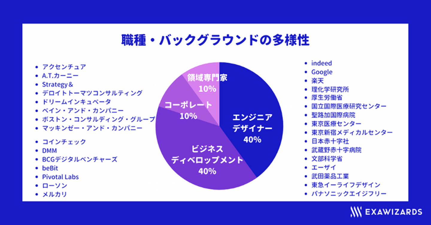 まず、私たちが解決しようとしている「社会課題」それ自体がとても多様ですし、当然、その課題を解いていくウィザードとして、多様な能力やバックグラウンドを持ったメンバーが集まっています。