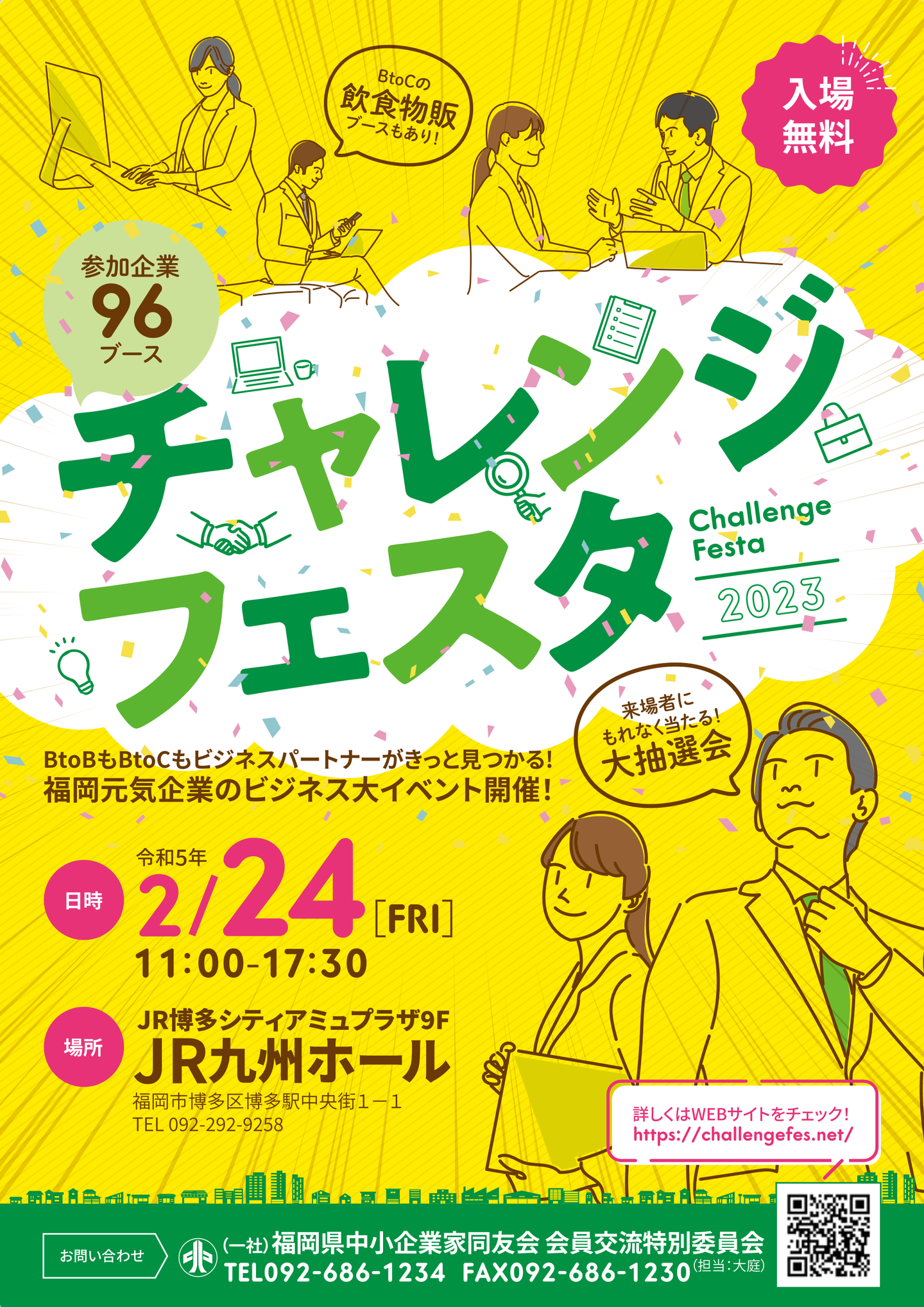 今月2月24日(金)、JR九州ホール(JR博多シティアミュプラザ9F)にて、元気な企業が自社ビジネスをPRするイベント「チャレンジフェスタ2023」が開催されます。