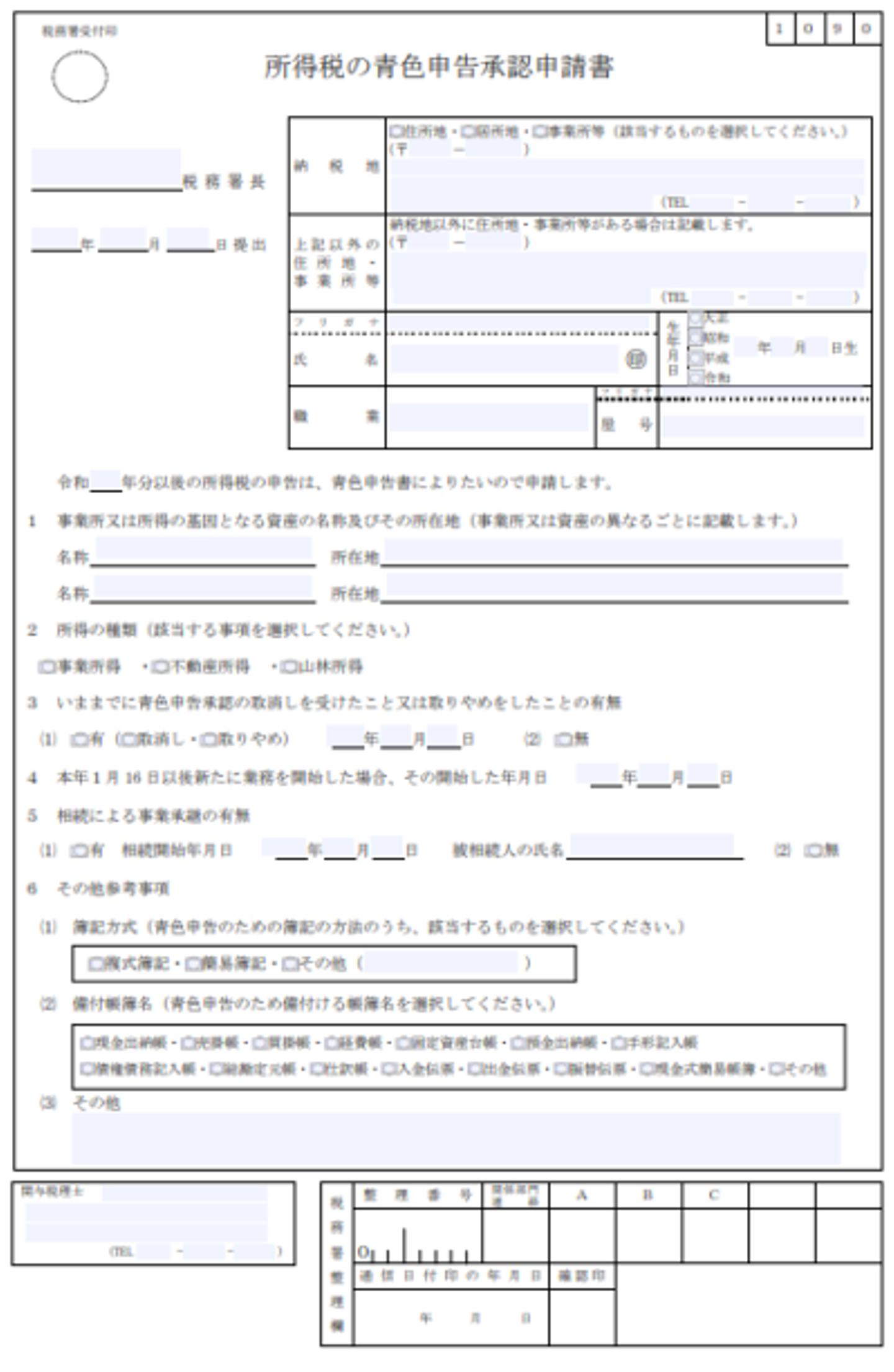 「所得税の青色申告承認申請書」の完成!