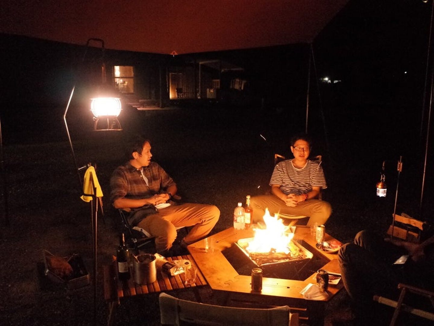 夜は、庭先でたき火を囲んで話をしました。直接面と向かうと言いづらいことも、たき火に向かって話すと話せるようになるので、オススメです。
