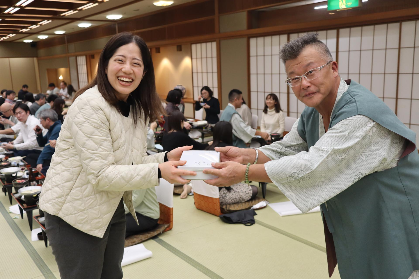 普段、大阪(福島)オフィスにてお菓子大臣を務められているとの事で、満面の笑みで賞品を受け取られました!