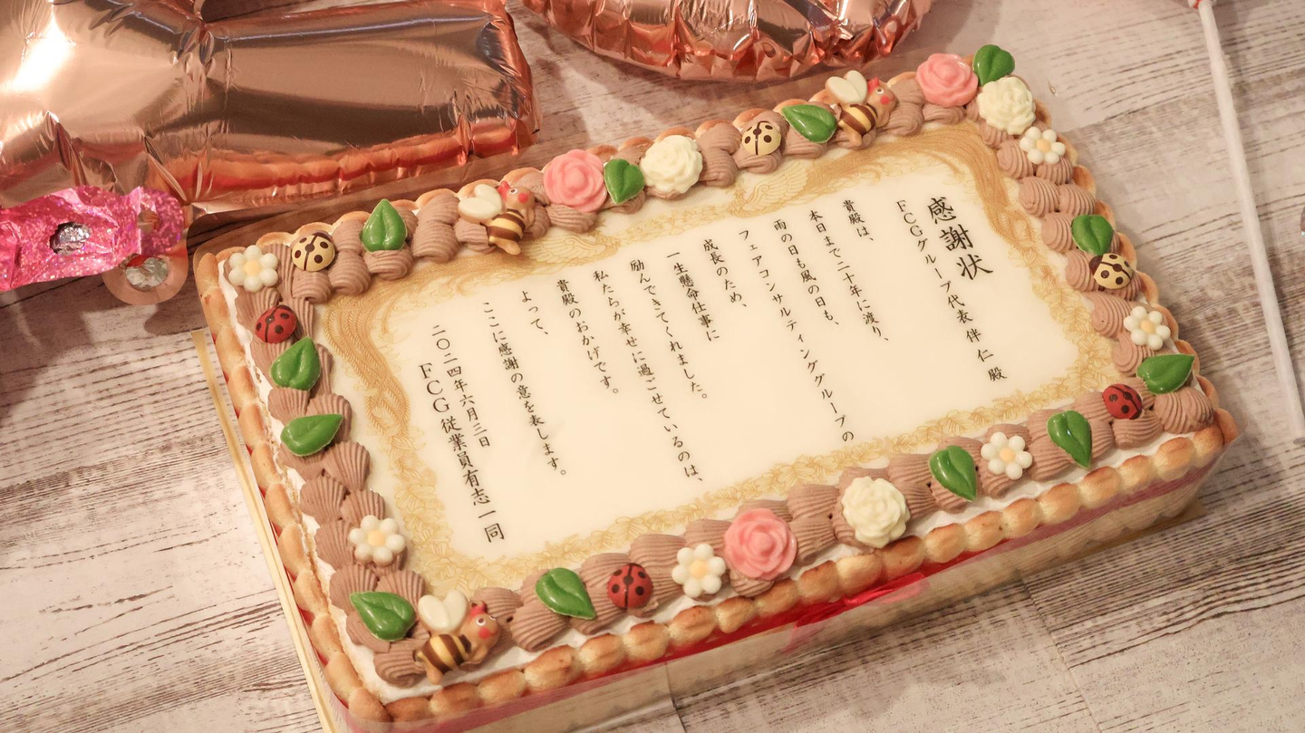 20周年記念、ということで「賞状」をあしらった素敵なケーキです🎂