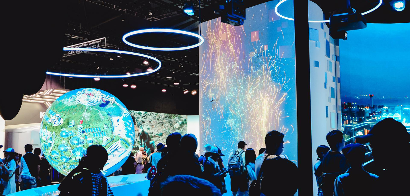 長さ約150mの広大なパビリオンで、さまざまな企業が出展する「未来の都市」を体験できます。