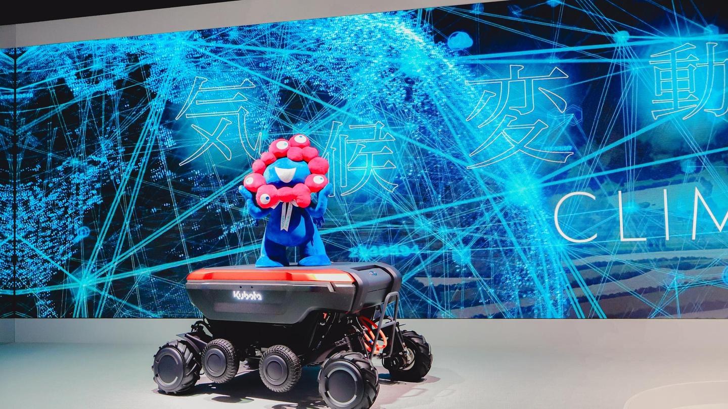 株式会社クボタの展示では、LEDモニターとスクリーンが一体となる空間で、人類と社会の歩みや「食と農業」の未来を知るという内容の展示でした!