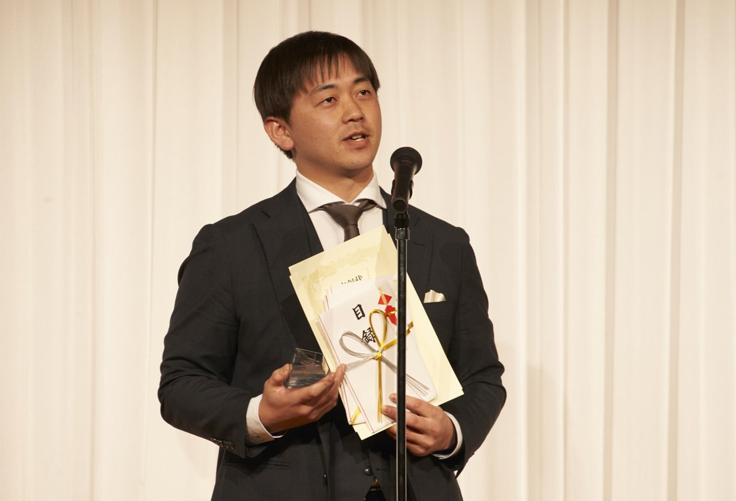 社長賞を獲得した1年前の自分から一番大きく変化したのは「体重」と話し、会場を笑わせました。仕事に打ち込むことで、なんと13kgもの減量に成功したそうです。以前エレベーターに同乗した冨吉が「お、ベイマックス!」と声をかけてきたことがあったそうですが、「それももうないと思うと寂しい」とのこと(笑)。始終体重ネタで会場を沸かせながら、