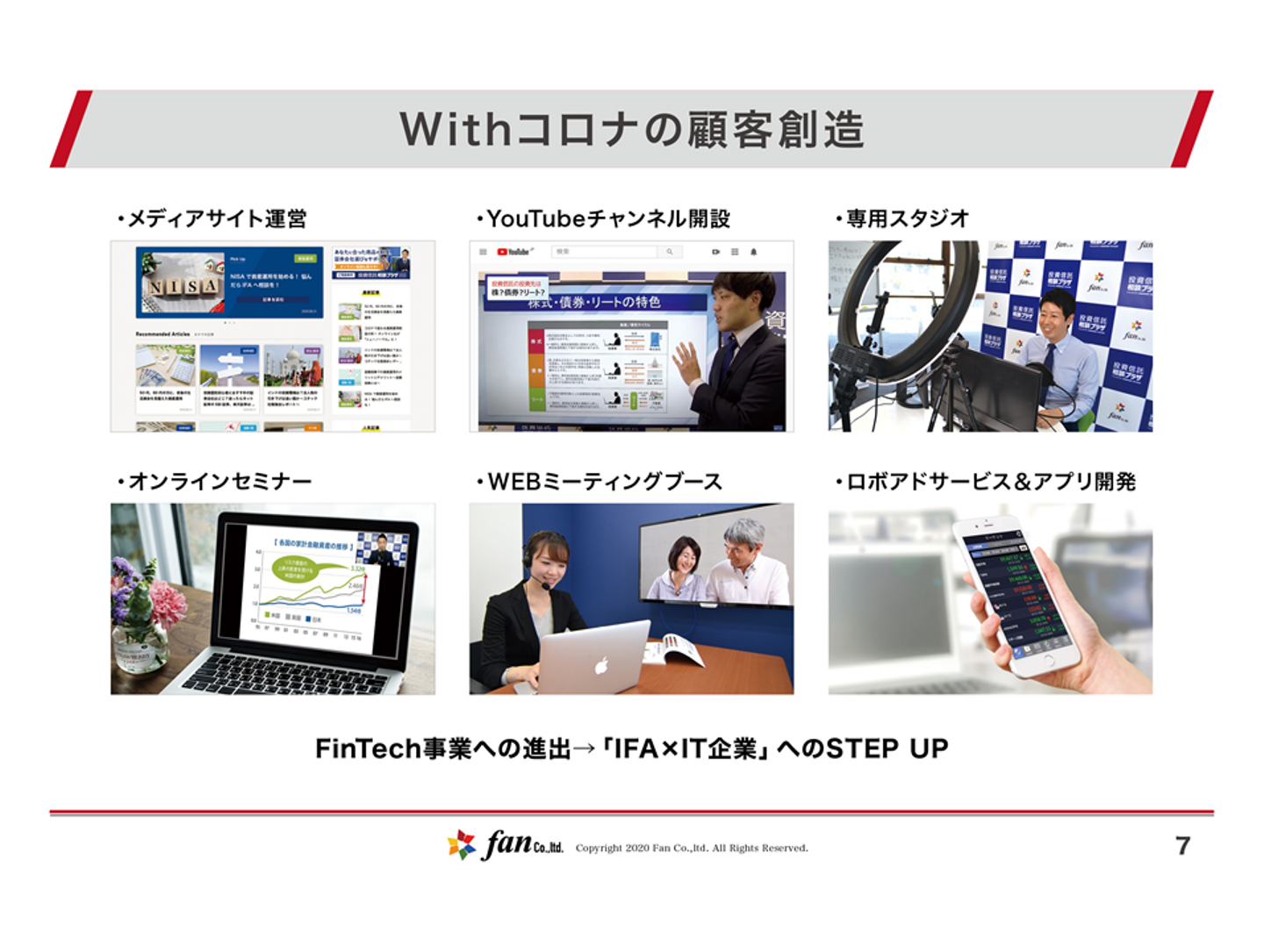 Fanにおいても会場セミナーや対面面談をメインの集客チャネルになっていましたので、影響は出ております。しかし、その中でもピンチをチャンスにかえるべく様々な施策を行い、コロナ禍でありながら9月時点で仲介口座10,000件をおかげさまで突破することができました。