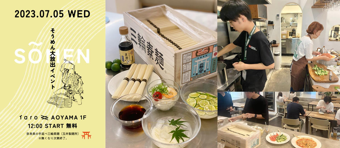 コロナ禍で減少したオフィス内の交流機会を増やすため、さまざまなイベント企画を実施しました。FARO青山10周年イベントでは、バリスタさんを招いた1日カフェや、代表の堀さんの出身地である奈良の三輪そうめんを振る舞うランチイベントを企画しました。いずれも忙しい仕事の合間に気軽に立ち寄れることがポイントですが、FAROのコンセプトのひとつである『食』を通じて、生産地や生産者のストーリーも楽しめるイベントとなるよう工夫しました。