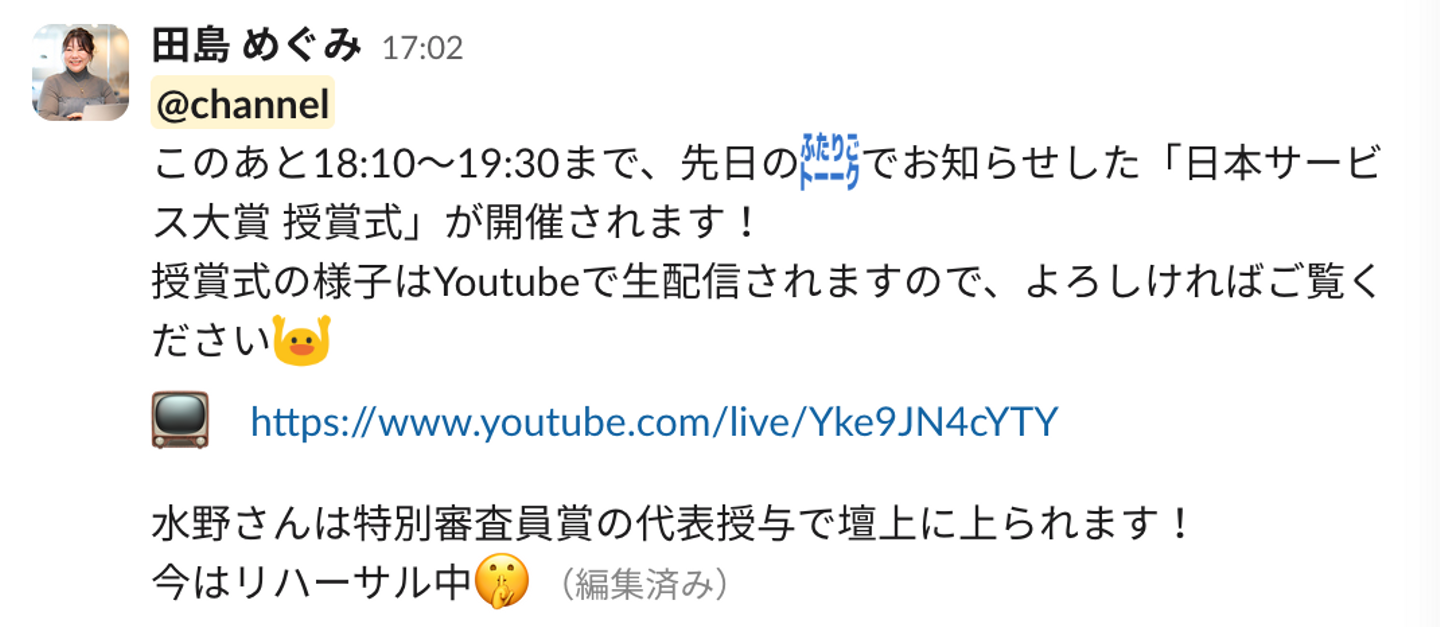 \ 当日の社内Slackの盛り上がりの様子/