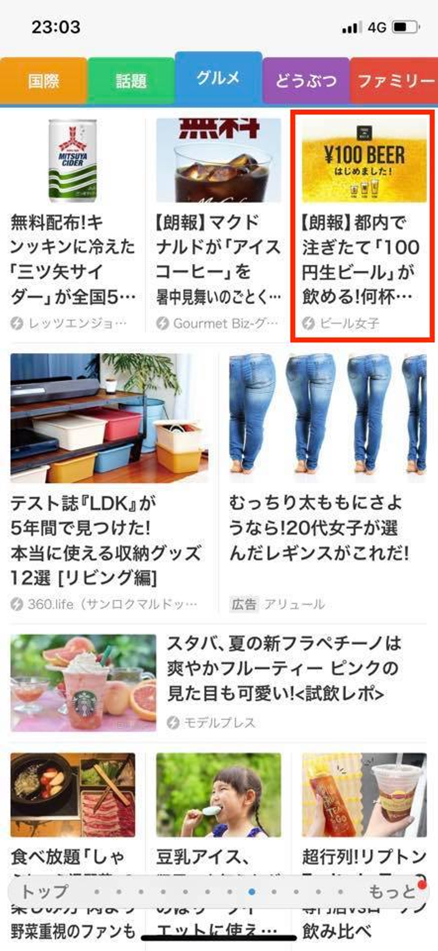 画像内の記事:セブン-イレブン 100円ビール発売中止