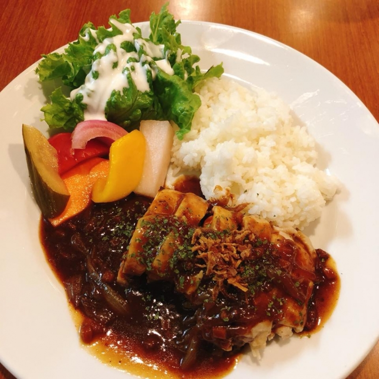 やわらかジューシーな低温調理肉の丼で昼食!