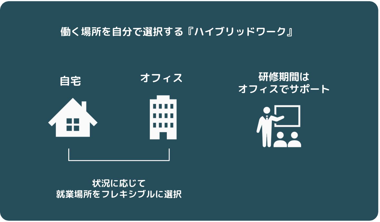「働く場所」についてもアップデートし、オフィスか自宅か、それぞれが考えるベストな環境で働くことを選択できる「ハイブリッドワーク制度」を導入しました。