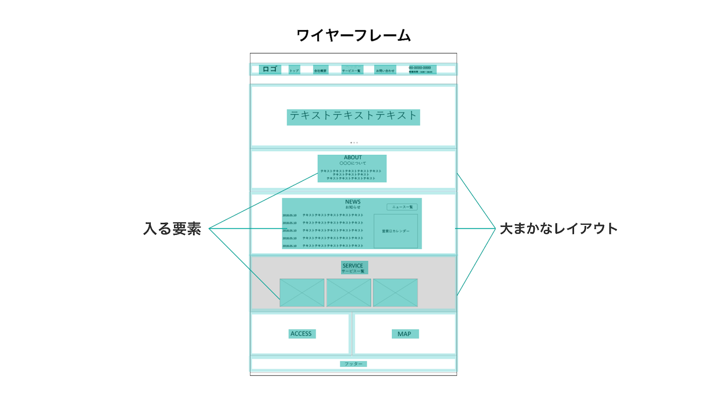 ワイヤーフレームとは、レイアウトが分かる画面のラフスケッチです。
