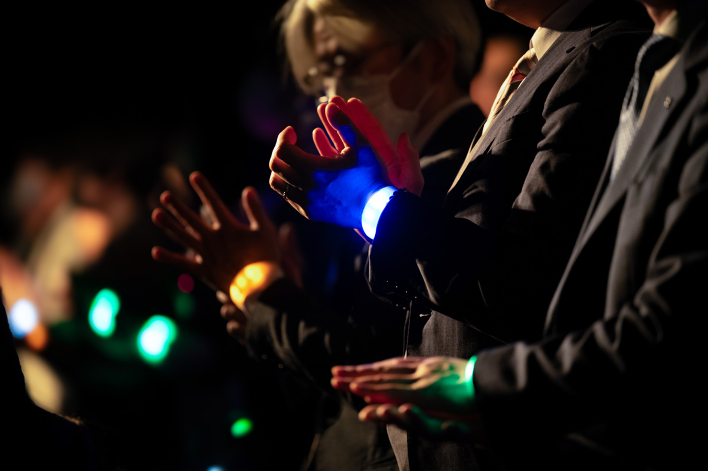 その思いがさらに大きく届くようにと、リストバンド式のライトをノベルティとして配布。
