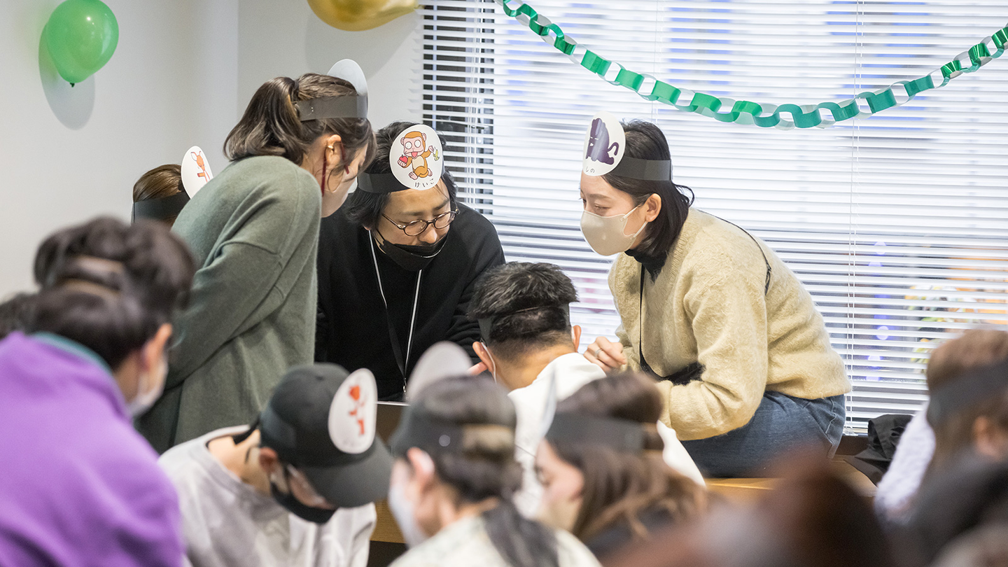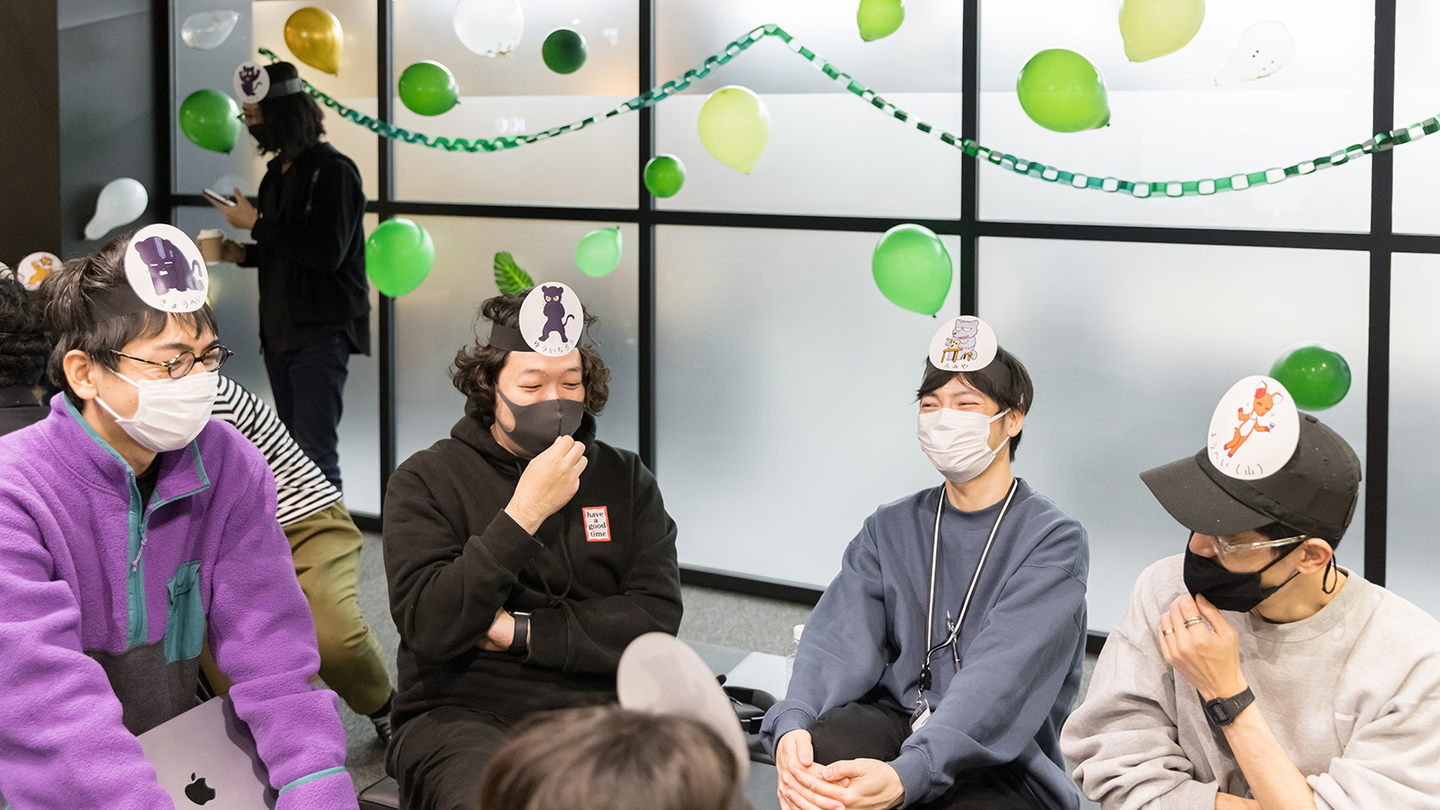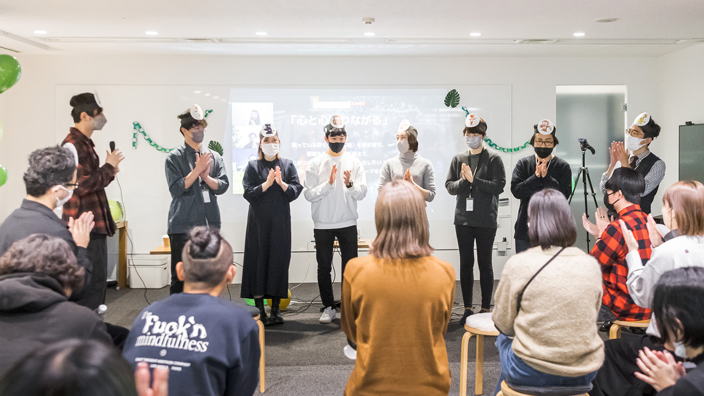 普段ものづくりをするうえで、みんなの想いや熱量を話したり、それぞれの個性をどう使うかが大切だと思っています。だから、みなさんの隠れざる個性をどうぶつキャラクターのお面にしてつけてもらいました。そこで、心と心でつながれる体験ができるとFICCはこれからもっと強くなれるんじゃないかと思って、FICC歴が浅い自分たちだからこそ感じたことと希望をテーマに込めました。