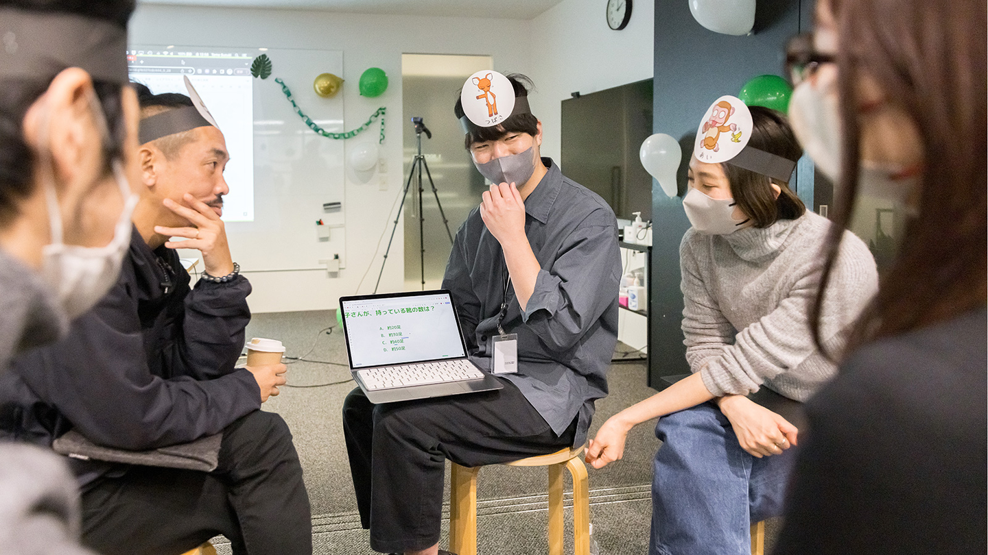クイズの内容は、「啓子さんが、持っている靴の数は?」「戸塚さんが、家庭科で使っていた裁縫セットのデザインはどれ?」など、まさにダレ得?なものばかり。普段左脳を使ってロジカルに考えることの多いメンバーたちですが、この日は右脳を使って直感で考えます。